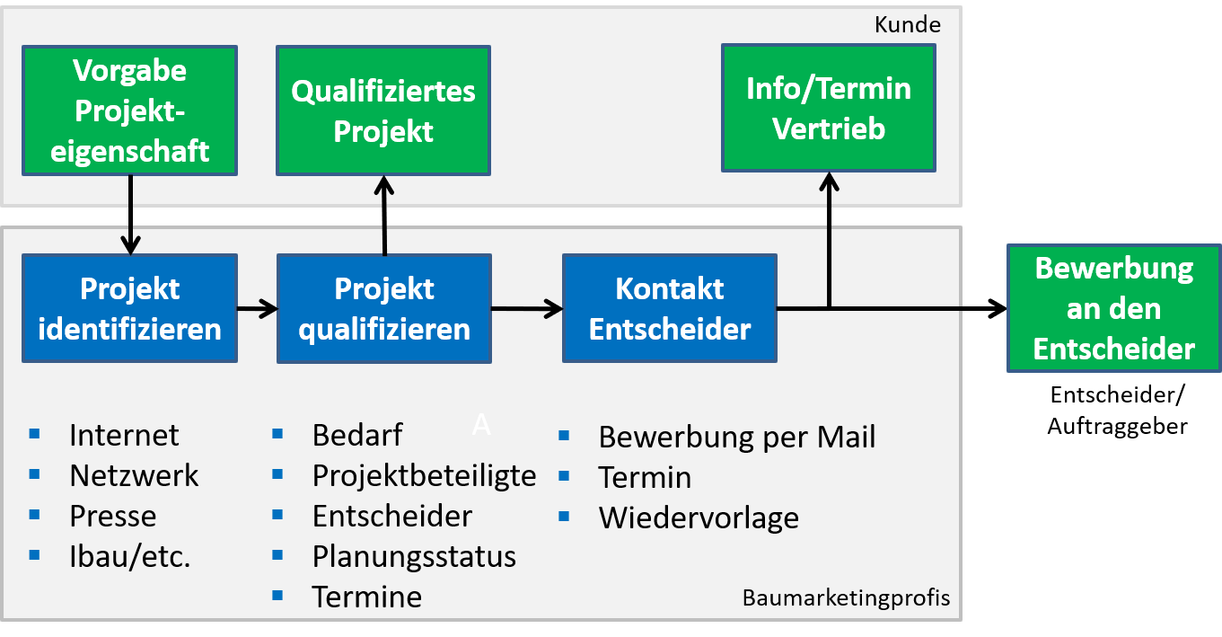 Selbsttständige Projektakquise und -verfolgung als Zuarbeit für den Vertrieb, bis zur konkreten Anfrage.